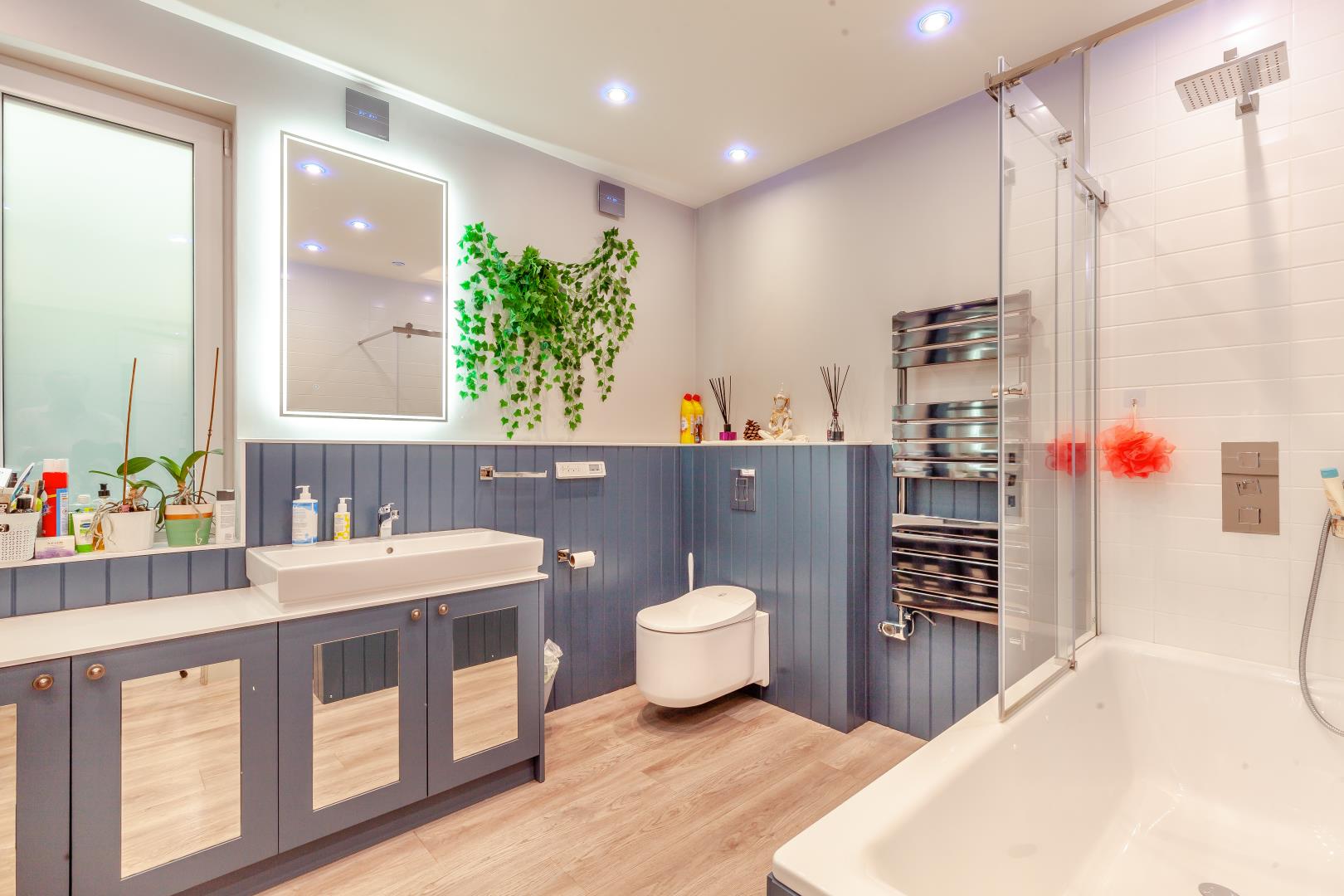 Bathtub. Extractor fan. Fitted with a three piece suite. Heated towel rail. Toilet. Towel rail. Underfloor heating. Space and plumbing for washing machine. Space and plumbing for tumble dryer. Recently Modernised. Storage. Vinyl flooring. Wall lights. Spot lights. Low voltage lighting.