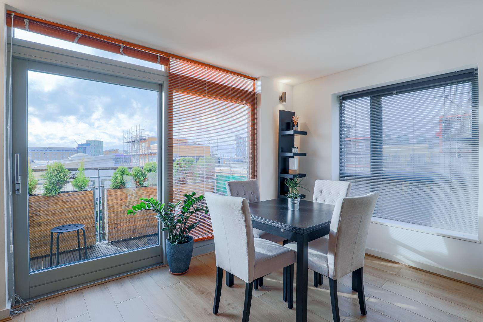 Bright apartment, sun surrounds it all day given its corner position in the 4th floor of the building. Also gives it a very private and modern balcony with no neighboring balconies. The bus stop is a few steps from the building door towards the O2 Arena, having 8 frequent bus lines (180, 486, 129, 180, 132, 472, 161 and 335). Due to the frequency, feels like having a bus waiting outside your building to take you non-stop to North Greenwich Jubilee line and the O2 Arena.