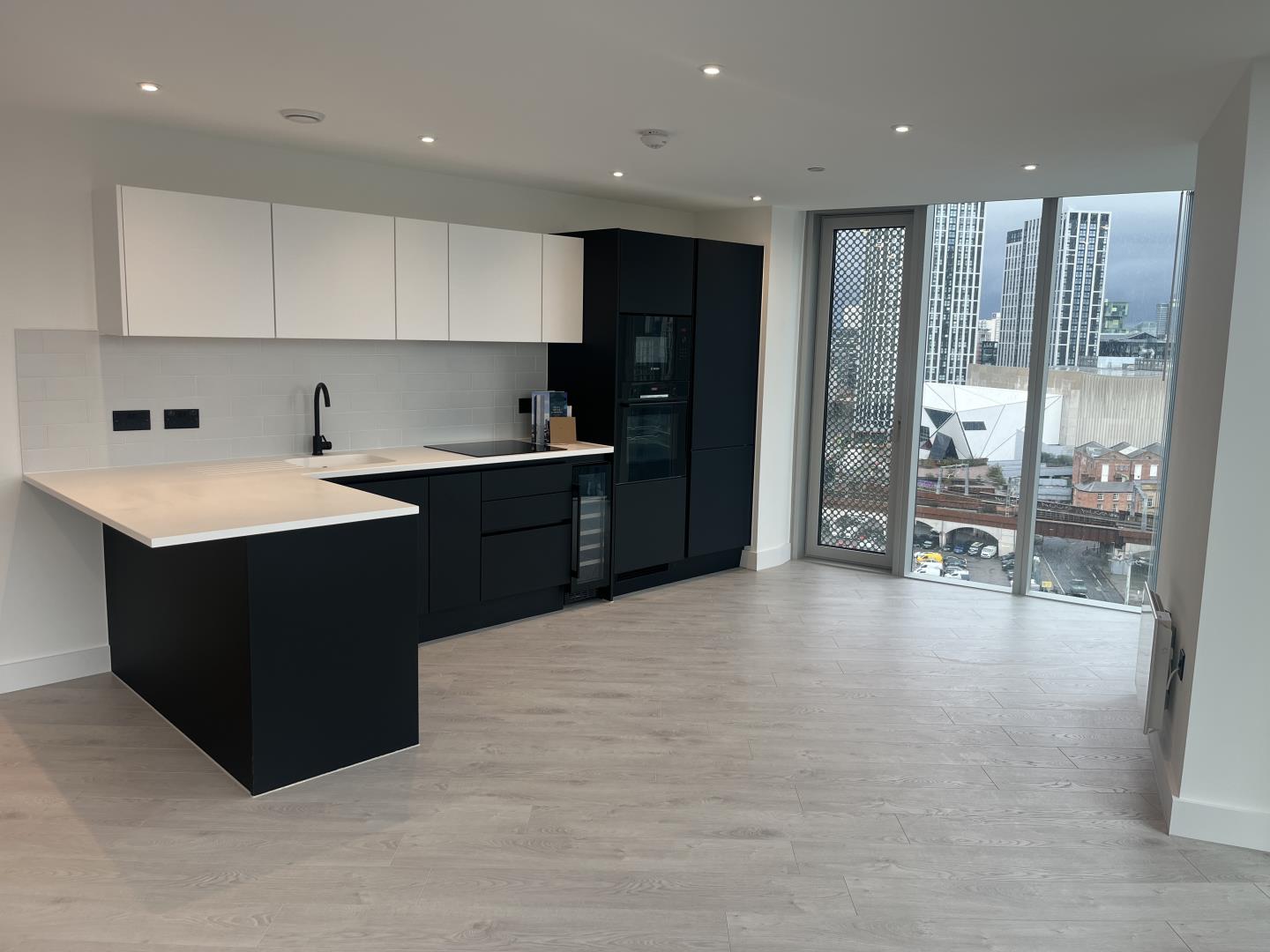 Situated on what is effectively the 16th floor (as the first four levels are dedicated to resident amenities), this brand-new XL corner apartment enjoys an elevated position within Renaker’s newest landmark tower — offering exceptional views and direct access to Manchester’s finest new lifestyle destination.