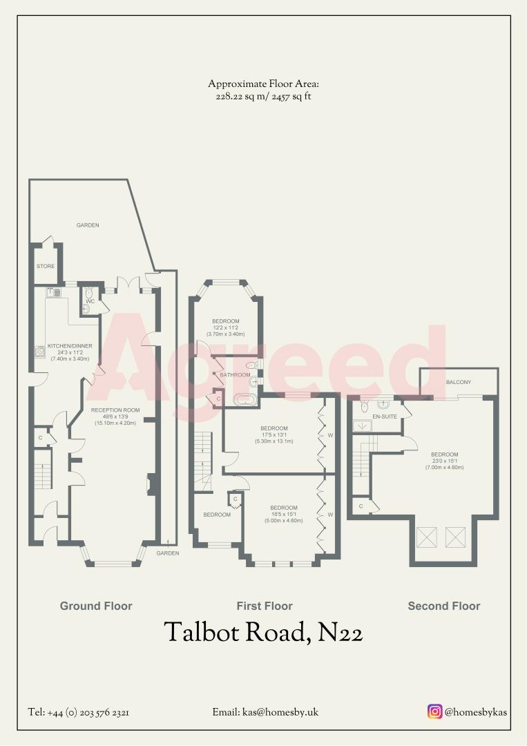 A larger than average five bedroom family home with a peaceful garden and balcony to loft bedroom.<br/><br/>The area:<br/><br/>Within a stones throw of Alexandra Park and providing great access to Crouch End and Muswell Hill and its golf club.<br/><br/>Transport:<br/><br/>Take a short walk and you’ll arrive at Alexandra Palace station, providing direct access to Moorgate or altenataively a short walk to Bounds Green connects into Central, West London and Heathrow airport.<br/><br/>The property itself:<br/><br/>Ground floor;<br/><br/>On entrance there’s a porch with original tiled flooring and a tall closet to hang coats and store footwear.<br/><br/>The hallway has an original tiled flooring continuing from the porch with stairwell leading to the first floor, lounge to the right, under stairs storage cupboard to the left and kitchen ahead.<br/><br/>The lounge has hard flooring, a large bay window boasting natural light and looking onto Talbot Road, feature fireplace and fitted storage units either side of the fireplace <br/><br/>The dining place has the continuation of flooring with storage cupboard to the right and ahead to the rear of dining room is access to the garden.<br/><br/>To the left is the kitchen. The kitchen has hard flooring, ample storage cupboard space and plumbing for a washing machine and dish washer. (not included with property), having a Bosch gas cooker, Bosch oven, and window looking onto the rear garden. The property comes with a large Samsung American fridge freezer.<br/><br/>The garden to the rear has a paved patio area with lots of nature, having large trees and a total sense of total secluded privacy <br/><br/><br/>First floor:<br/><br/>The first floor has a bedroom to the rear end with wooden flooring and a large window with views onto the peaceful rear of the property <br/><br/>To the right of the hallway is the family bathroom. The bathroom has a light tiled flooring, beautiful stained glass window, full size bath tub with power shower (handheld) and a vanity unit with storage cupboard.<br/><br/>To the right of the bathroom are two large storage cupboards<br/><br/>Further to the right of the stairwell on the landing is another large bedroom. This bedroom has wooden flooring, floor to ceiling wardrobes and a view of the rear.<br/><br/>To the front side of the house are two bedrooms. The smaller of the two bedrooms has wooden flooring and a window to the right looking onto Talbot Road<br/><br/>The bedroom to the front has wooden flooring, a large window and floor to ceiling wardrobe space inbuilt running across the one wall.<br/><br/><br/>Second floor:<br/><br/>The bedroom in the loft has a wooden flooring and a pitched room providing great space for storage. This bedroom has a balcony/ terrace with views onto the rear and great for a miracle morning wake up routine. A great place to have a coffee and read.<br/><br/>To the left of this bedroom is the en-suite. The en-suite has a modern finish with large marble floor tiles, a towel radiator and shower enclosure with power shower. Having storage above the sink and a window too.<br/><br/><br/>Energy Performance Certificate:<br/><br/>Currently energy rating B. Potential rating B.<br/><br/>